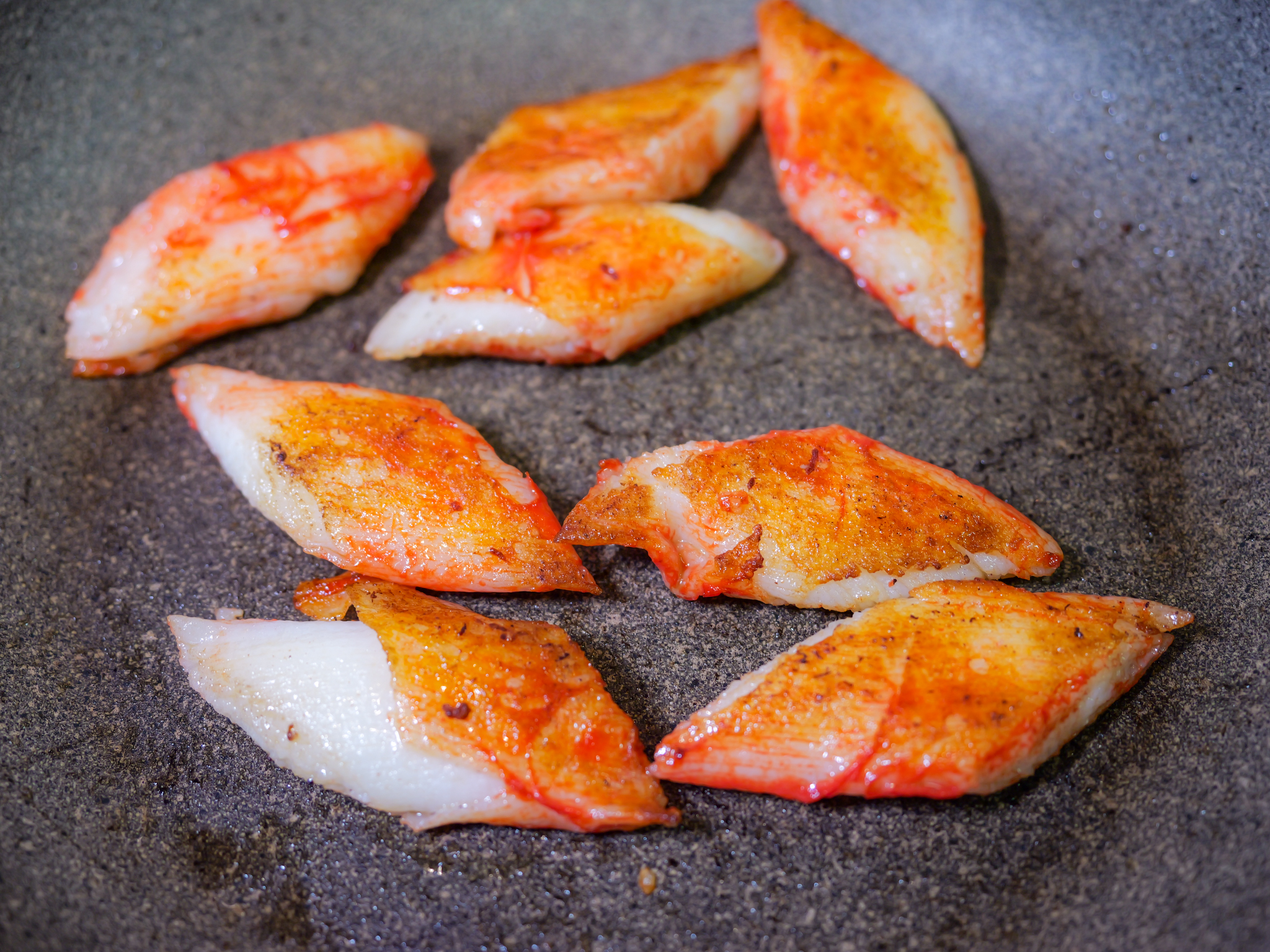 軽く焼き色がついたら、梅酢を加えて絡める。