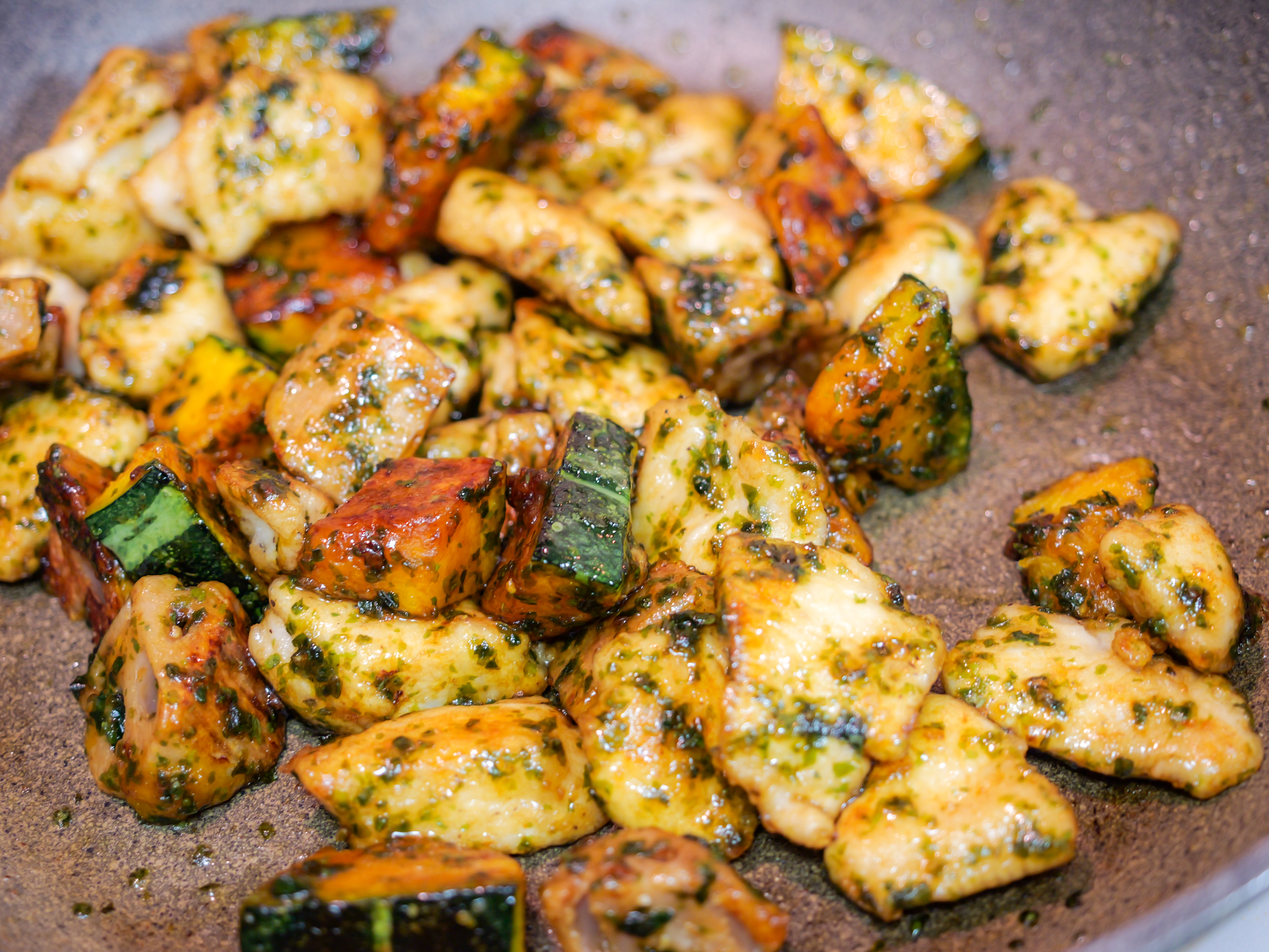 野菜に火が通ったら、鶏肉を戻し、☆の調味料、あおさを入れ絡めて完成。