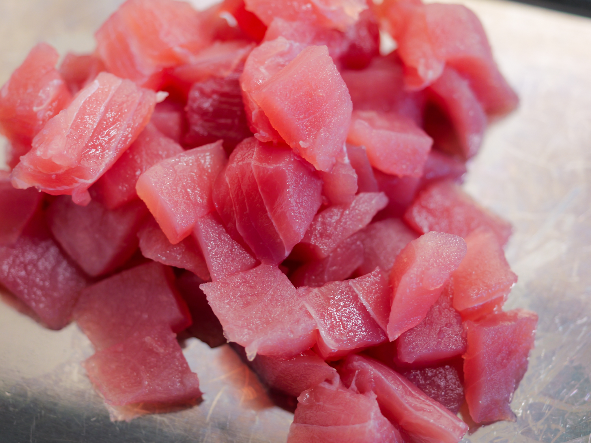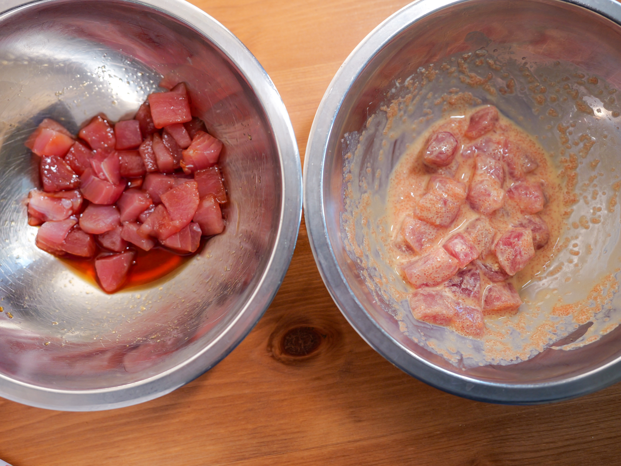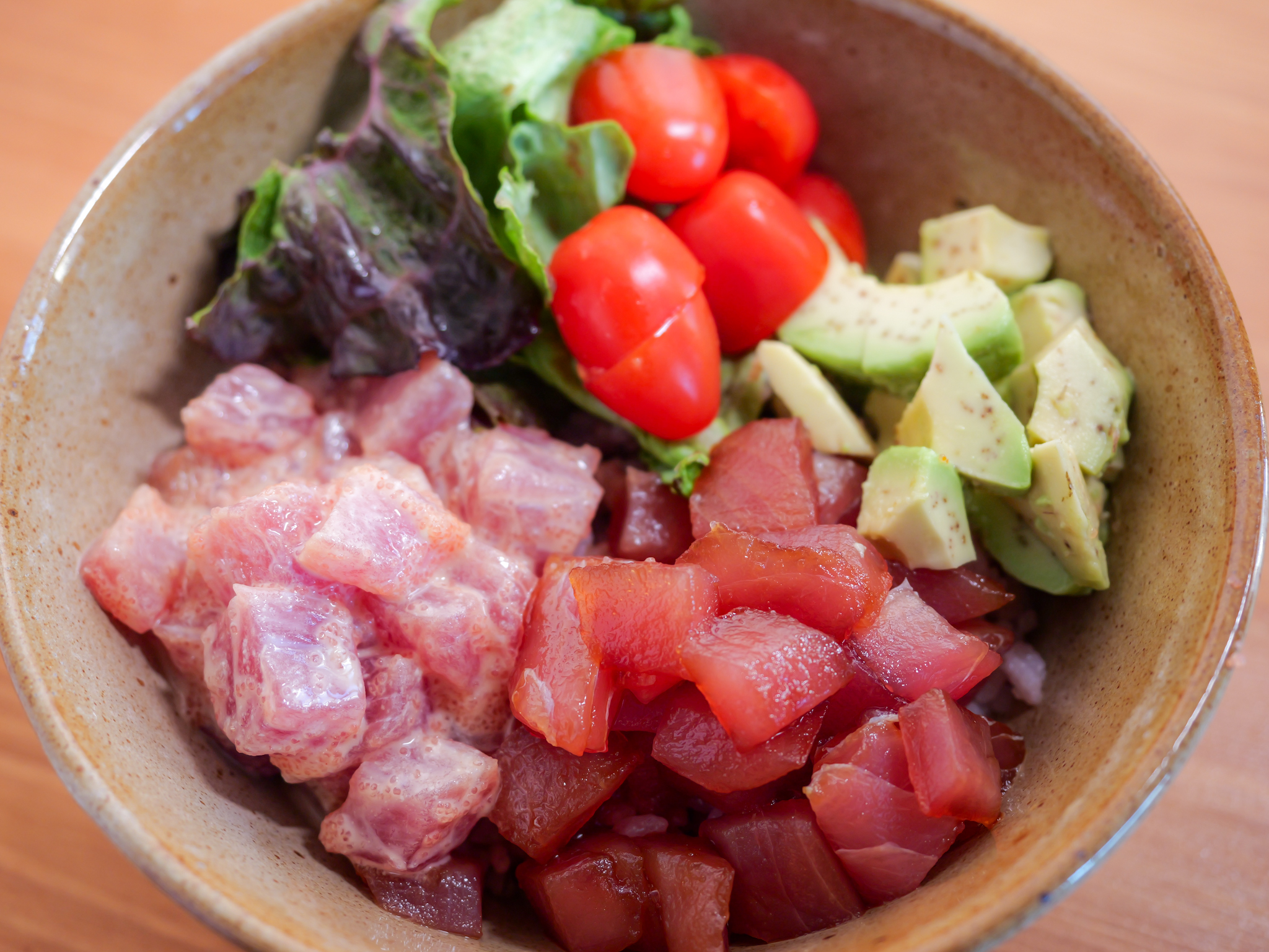 ピリッと辛い明太マヨに、わさびと梅酢醤油を効かせたさっぱりスパイシーなポキ丼。