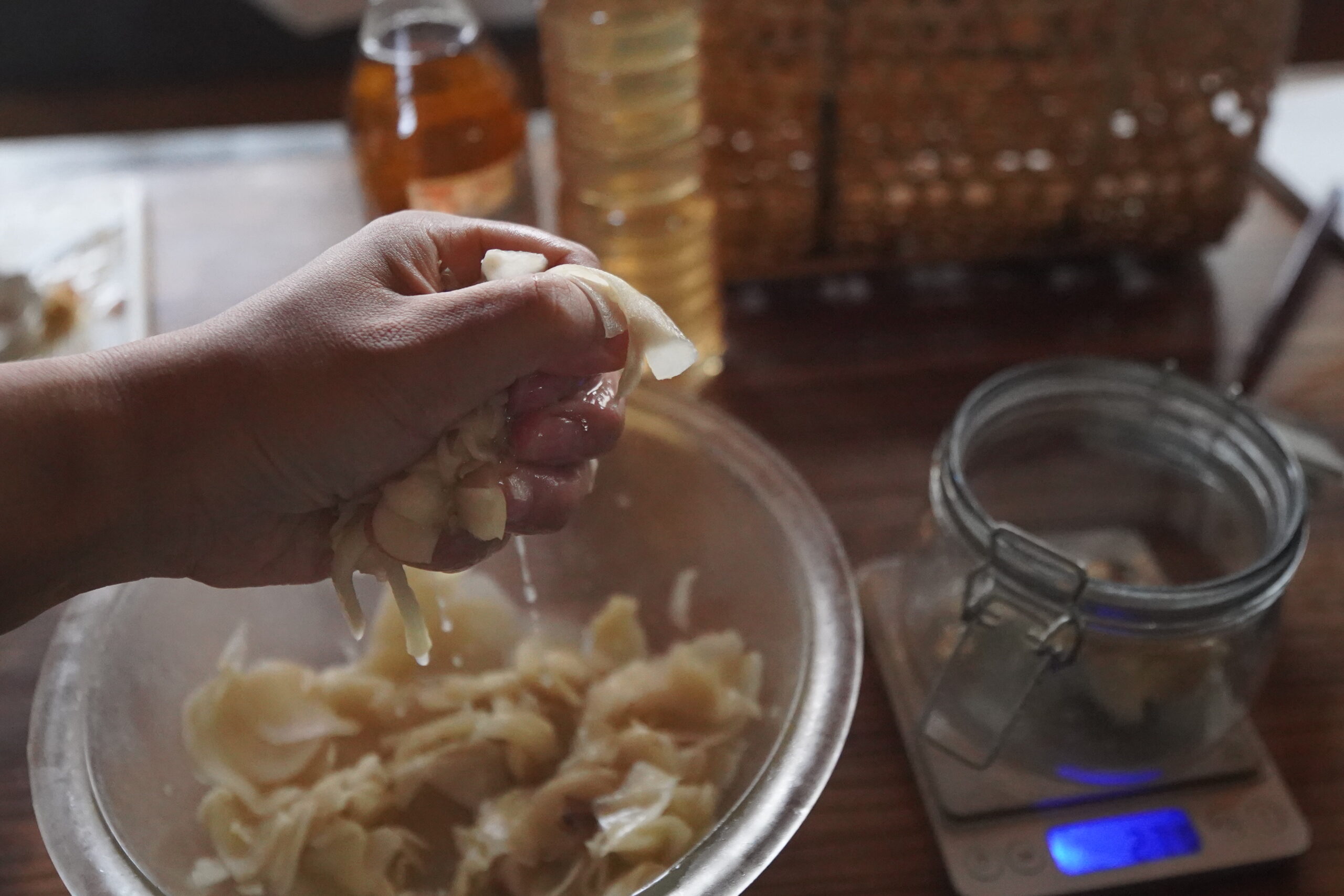 冷蔵庫から出した生姜の水気を切り、容器に入れる。