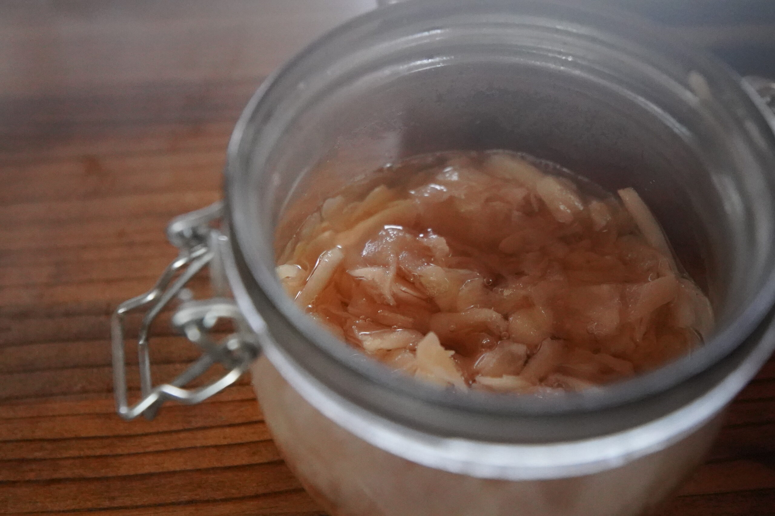 火を消して水気りした生姜と合わせ、半日寝かせたら完成。(冷蔵庫に入れておけば半年は持ちます。)