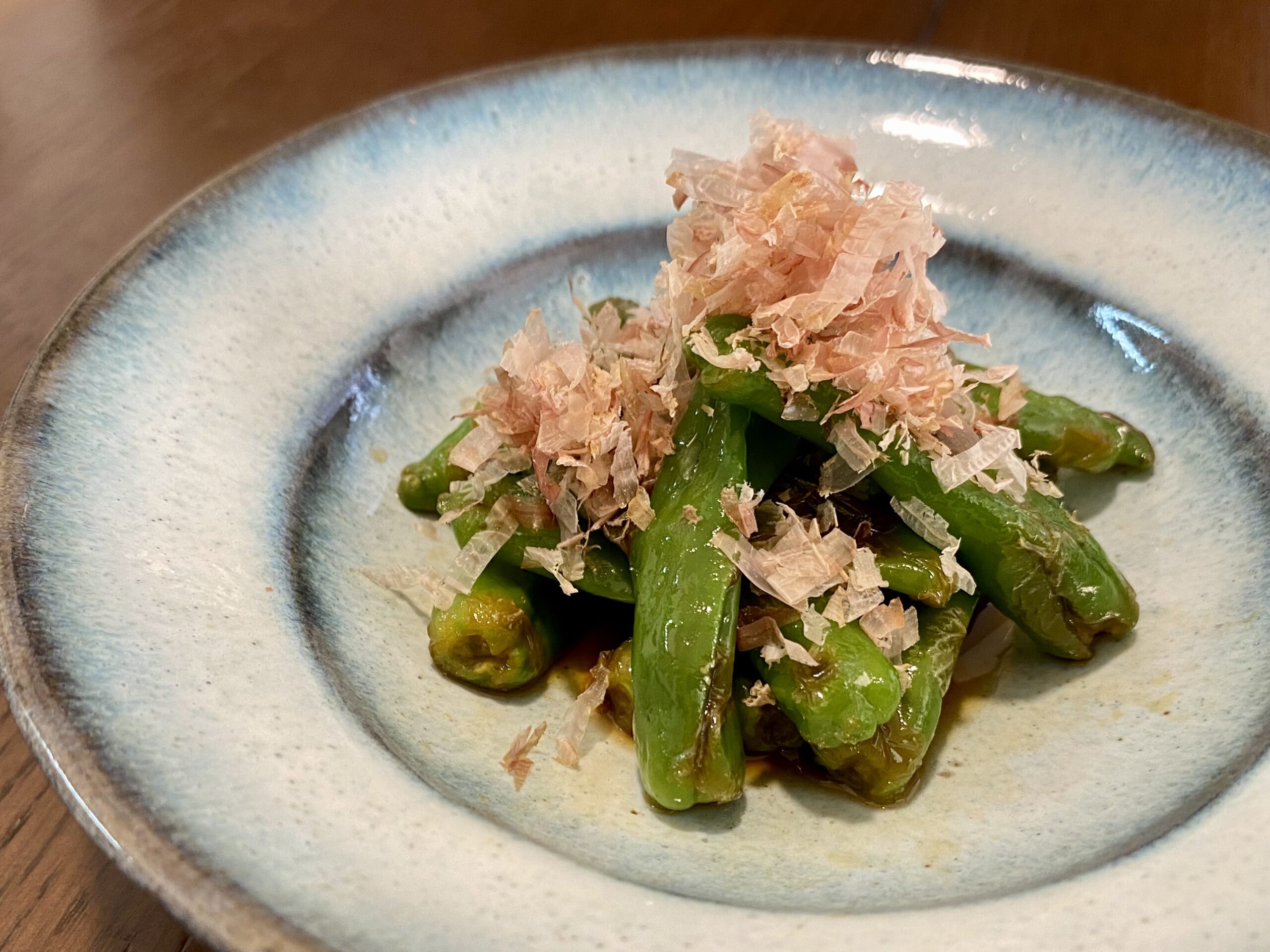 梅酢の酸味と塩味が、ししとうの旨味や香りを引き立てる。