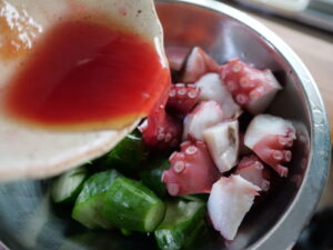 タコ、きゅうり、キムチとタレの材料(☆)をボウルに入れて和えれば完成。