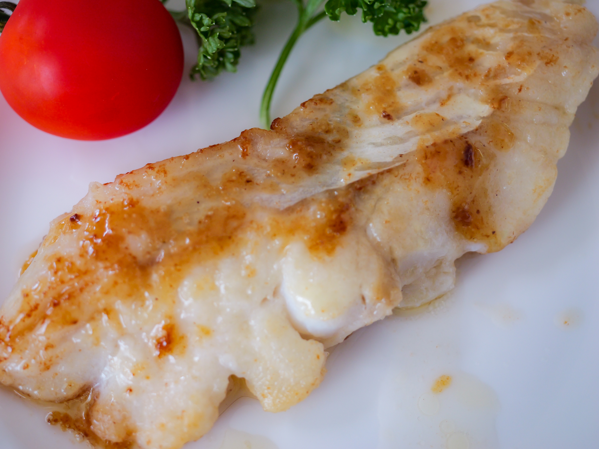 外はカリッと、中はジューシーに焼き上げたタラに、爽やかな梅酢バターソースを絡めた一品です。
