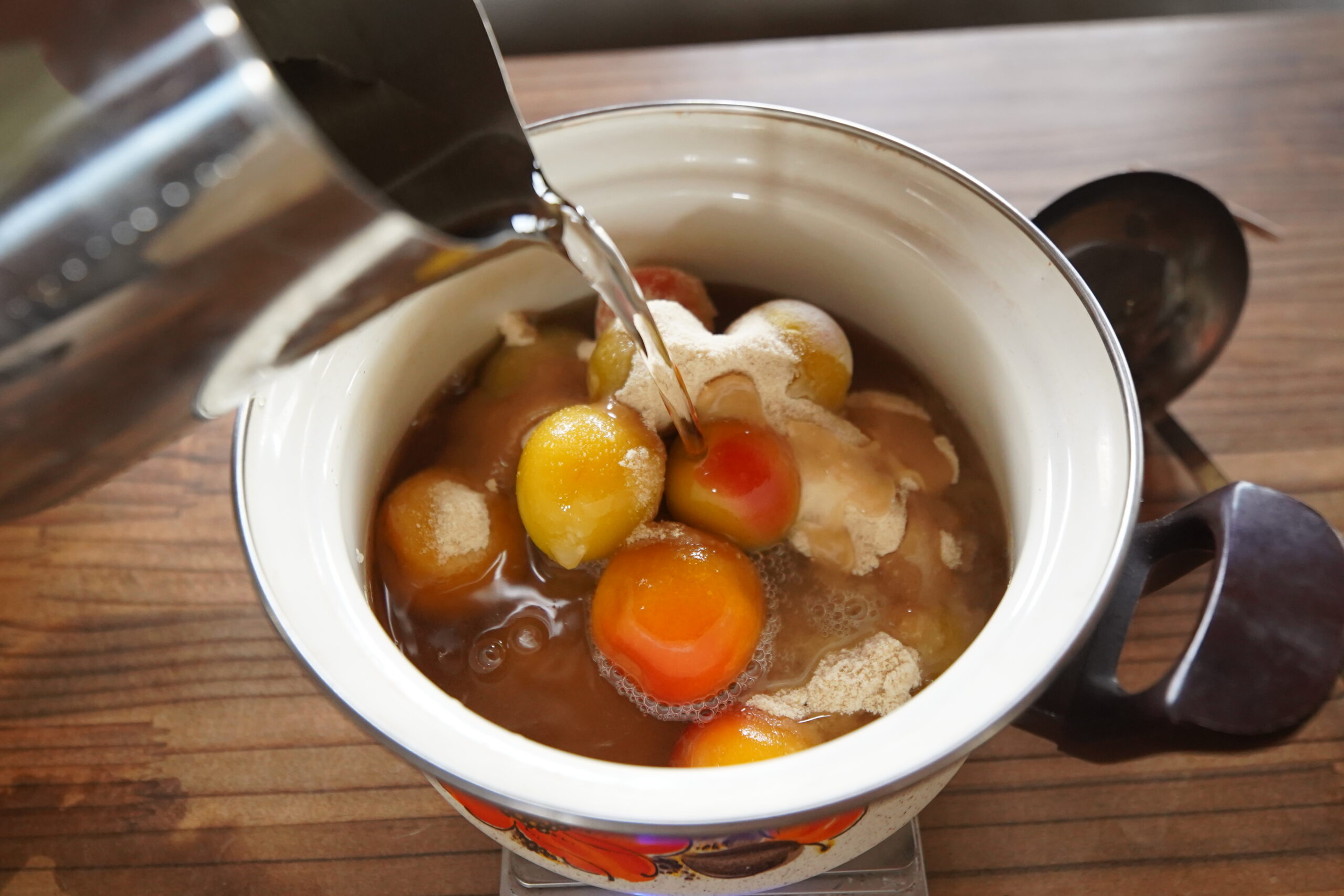 沸騰するまで中火で温め、沸騰したら弱火で8分。