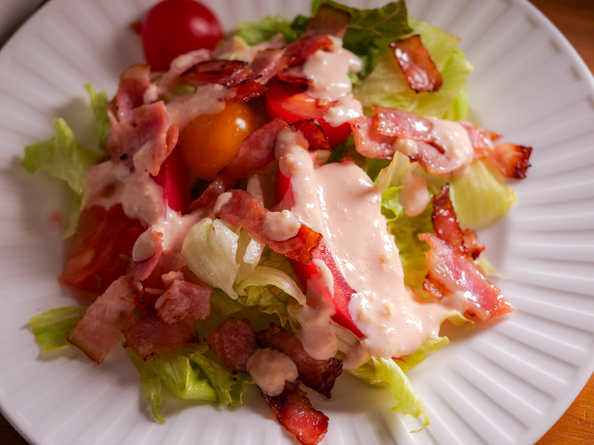 にんにく、粉チーズのコクに、梅酢のまろやかさと紫蘇が香る、和風ドレッシングです。
