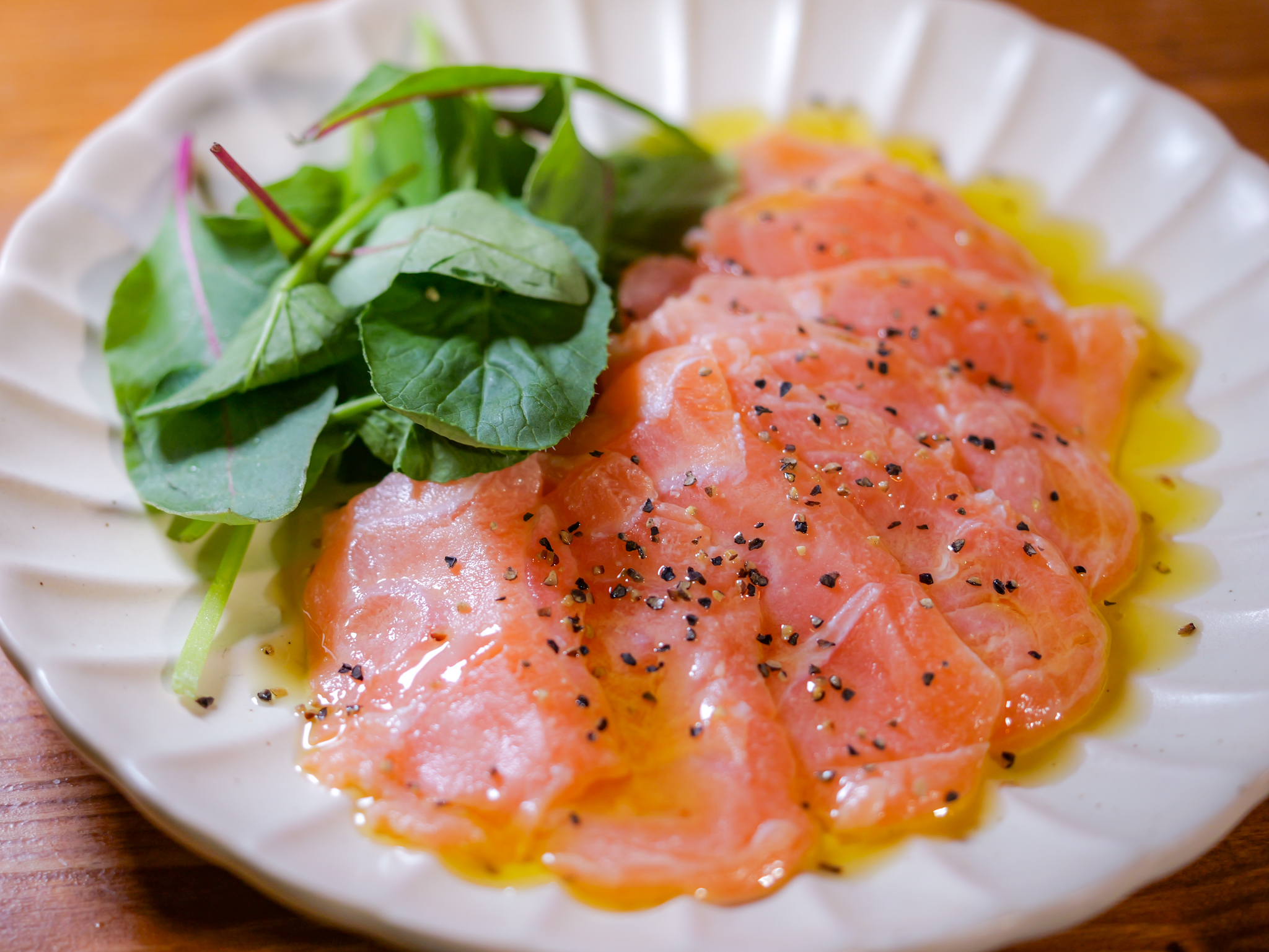 下味は梅酢のみ。本格的なカルパッチョが簡単に作れます!