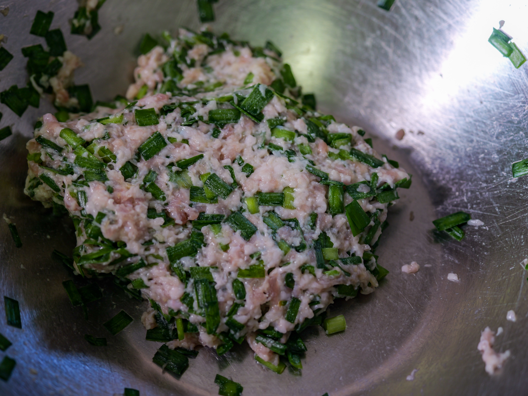 肉ダネの材料(☆)を全てボウルに入れ、粘り気ができるまでよく混ぜる。