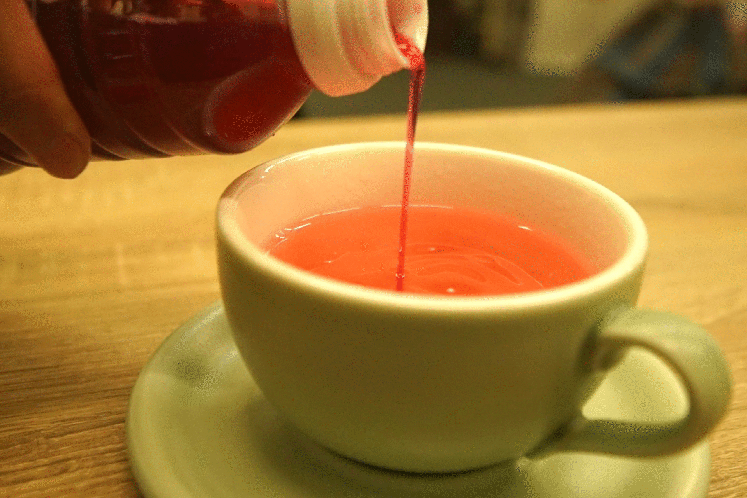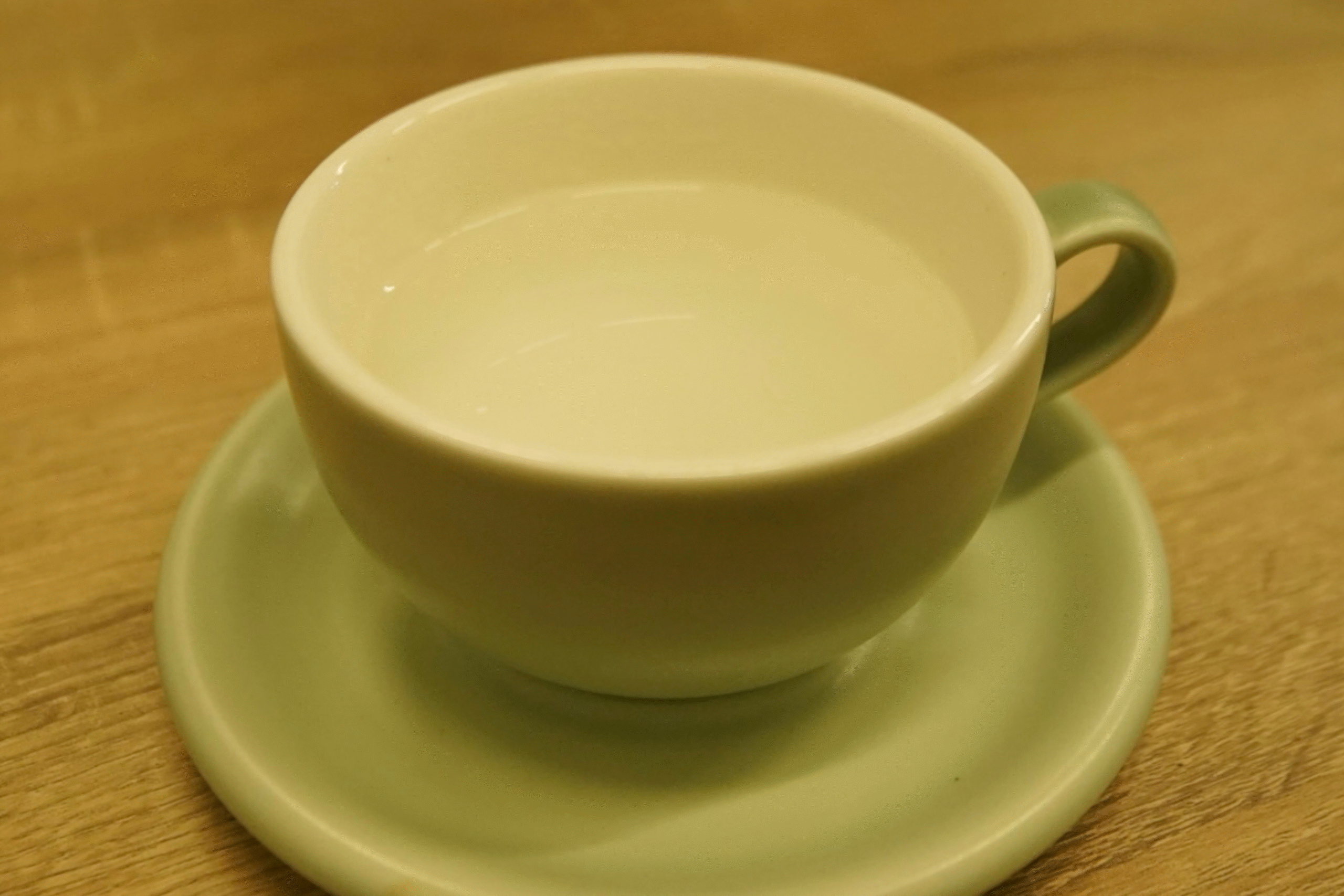 コップにお湯を注ぐ。