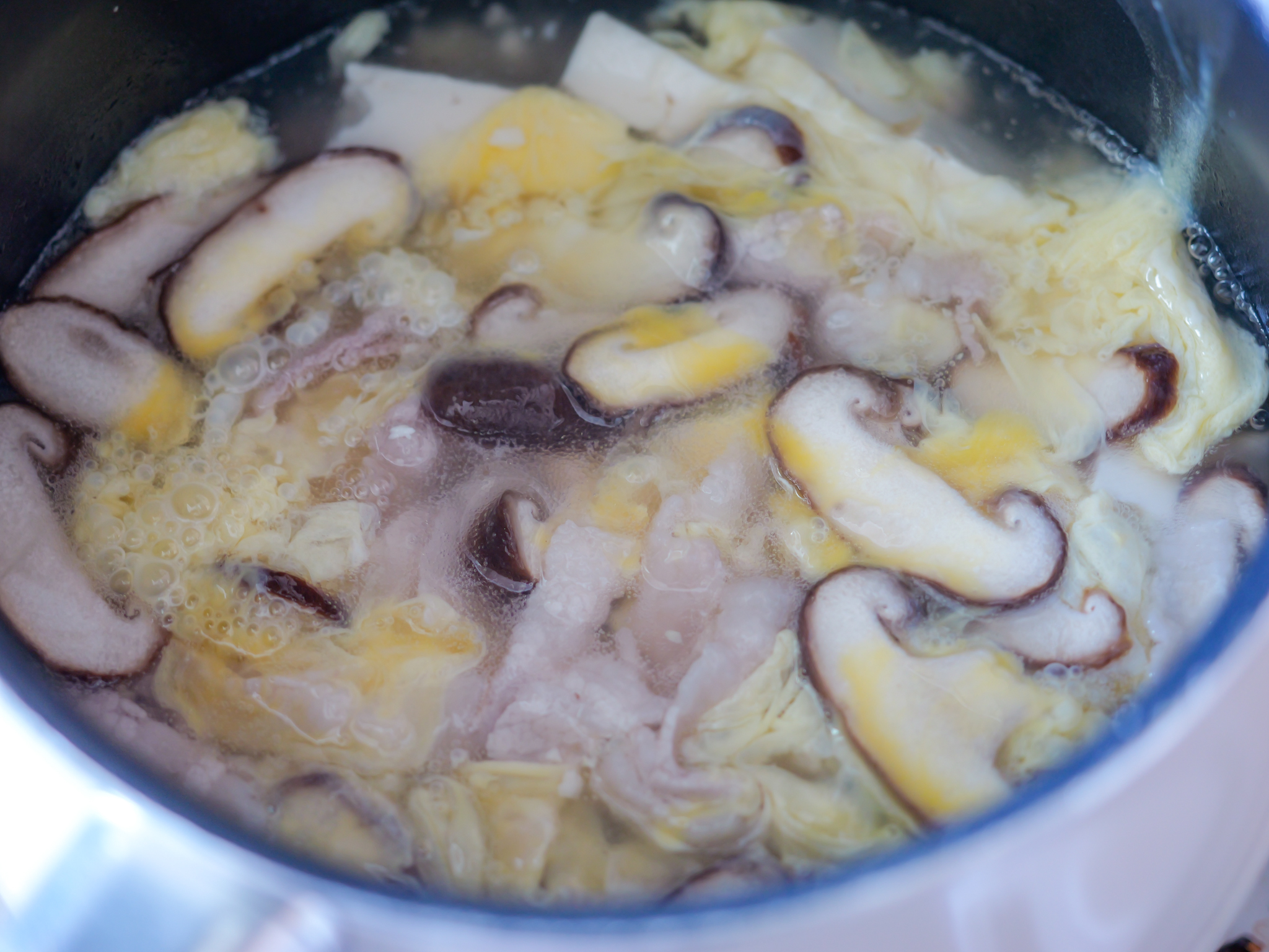 豚肉と椎茸のコクがスープに深みを与え、豆腐とふんわり卵の食感とも相性抜群♪