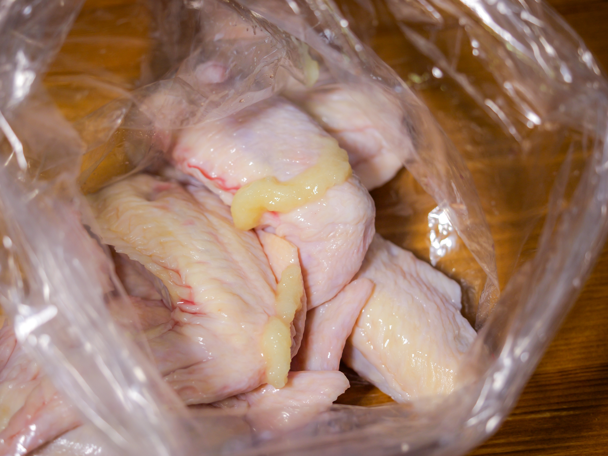 袋に手羽先、梅酢、にんにくを入れ揉み込んでおく。