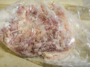 ポリ袋に鶏もも肉、下味用の梅酢、料理酒を入れ揉みこむ。