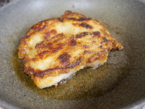 弱火で両面をじっくり焼き、焦げ目が付くまで揚げ焼きにする。